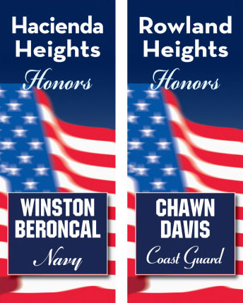 The Military Recognition Banner Program honors our brave men and women who are actively serving in the military from the communities of Hacienda Heights, Rowland Heights, and Unincorporated Whittier.